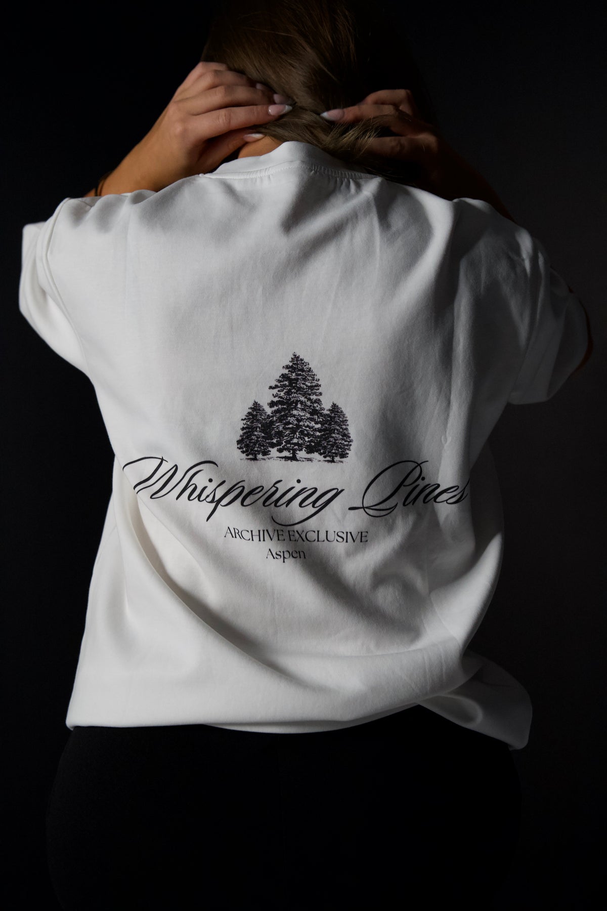 Introducing the Whispering Pines Performance t-shirt in White - a slightly oversized lightweight, technical fabric. Built for breathability, cooling comfort and ease of movement - Featuring Whispering Pines design front & back.